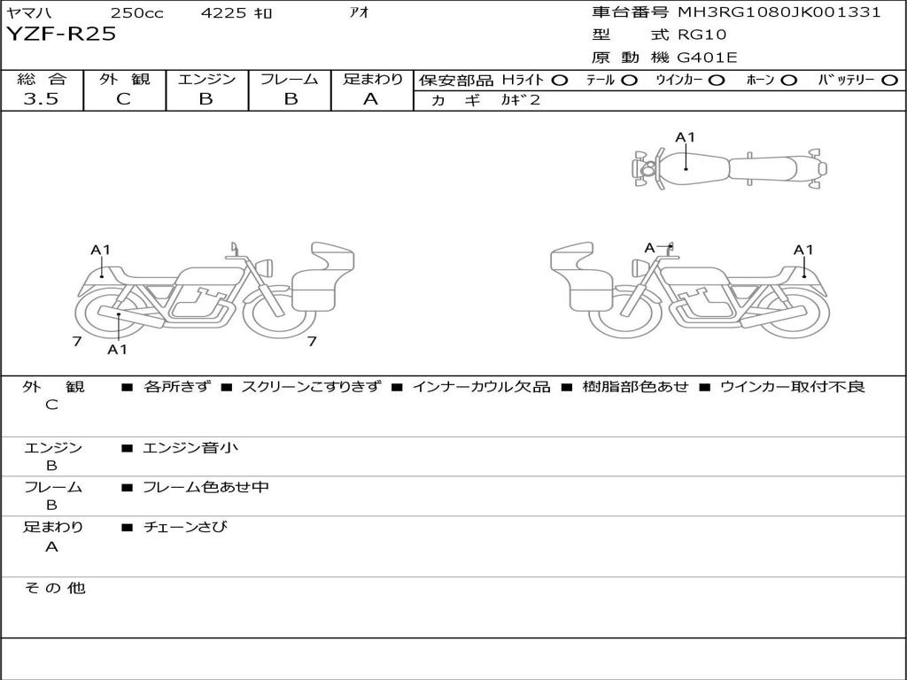 | Номер рамы / VIN | MH3RG1080JK001331 |