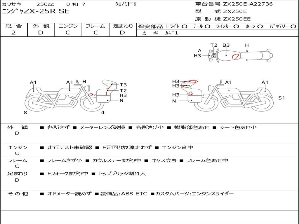 Номер рамы / VIN | ZX250E-A22736 |
