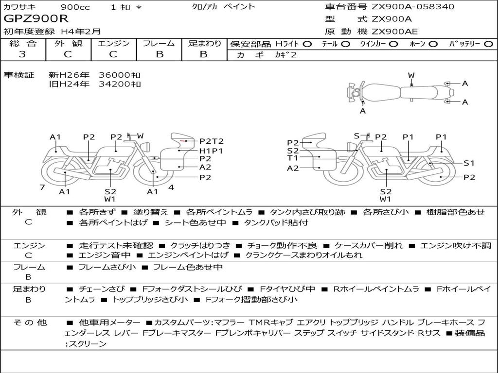 | Номер рамы / VIN | ZX900A-058340 |