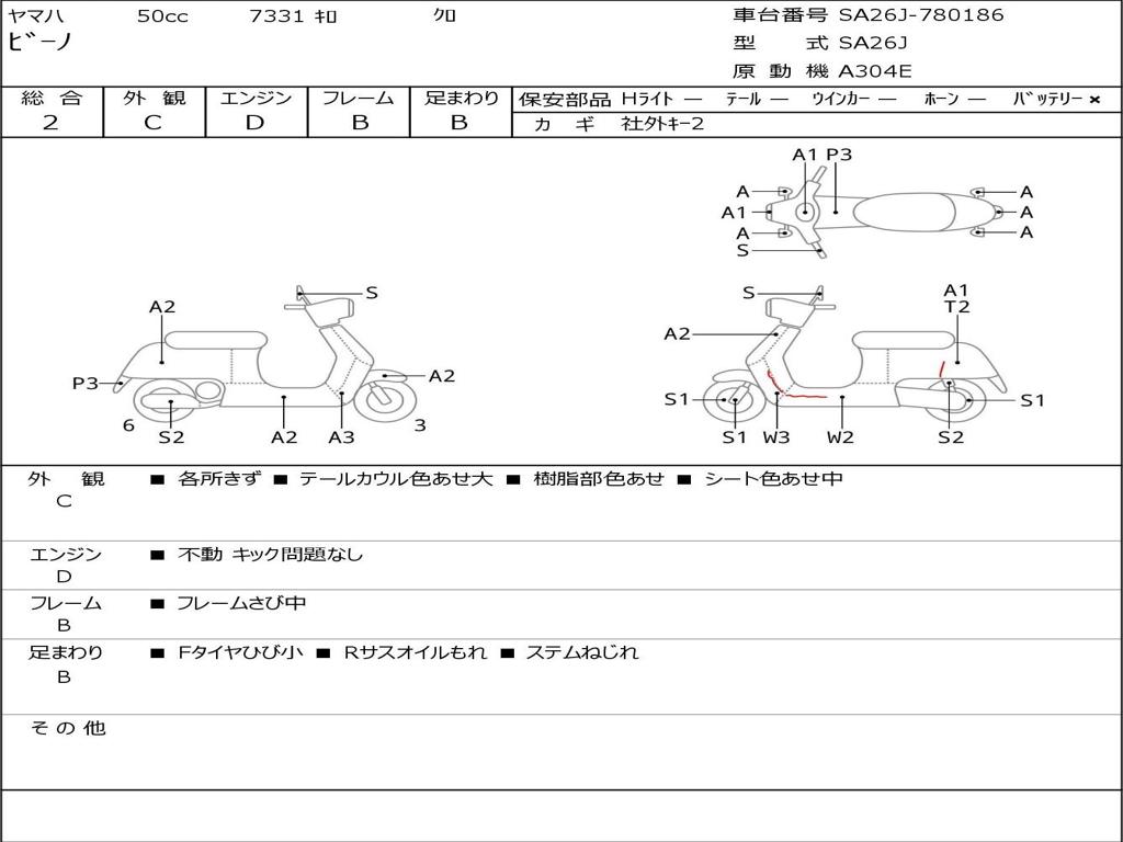 | Номер рамы / VIN | SA26J-780186 |