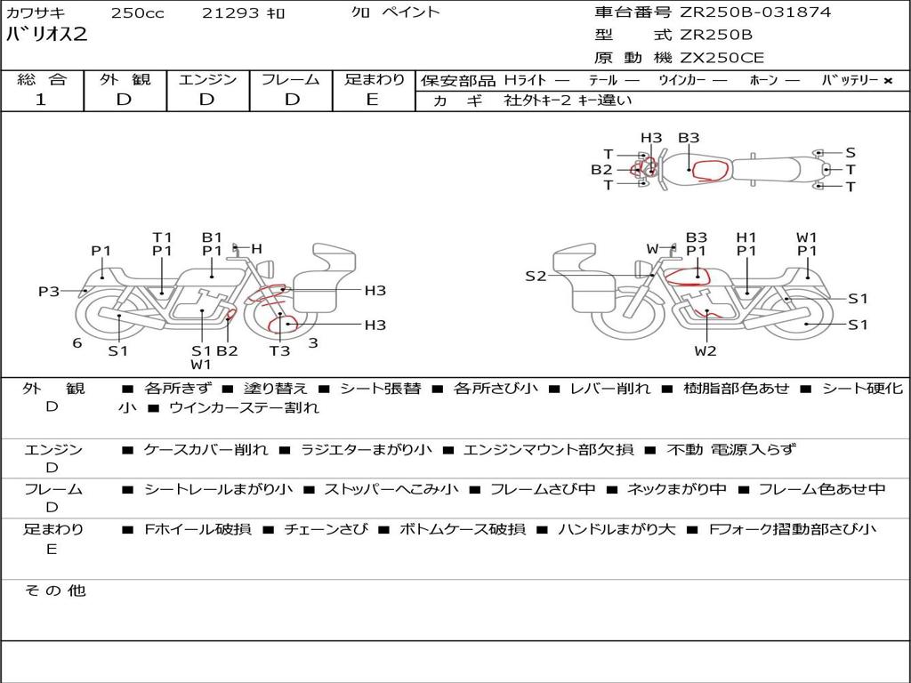 | Номер рамы / VIN | ZR250B-031874 |