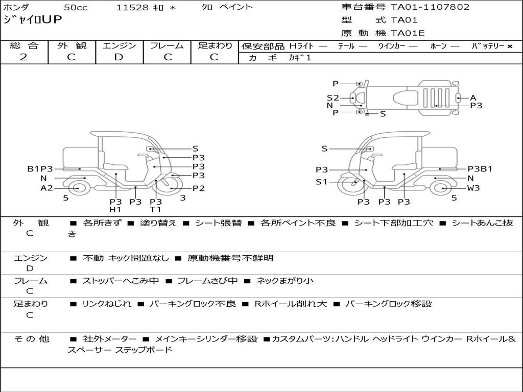 | Номер рамы / VIN | TA01-1107802 |