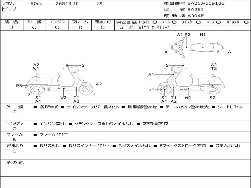 | Номер рамы / VIN | SA26J-609183 |