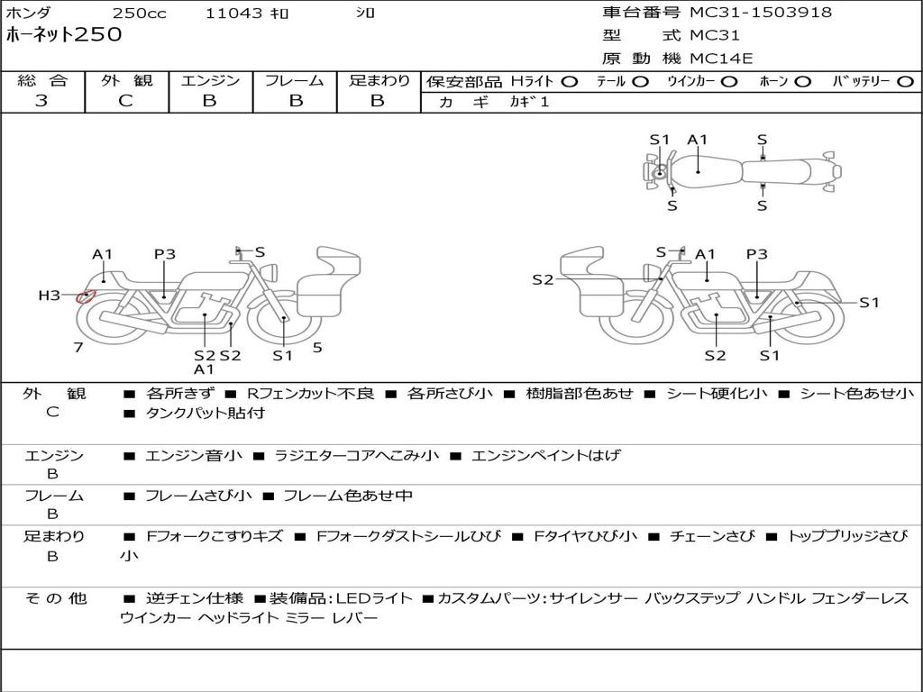 | Номер рамы / VIN | MC31-1503918 |