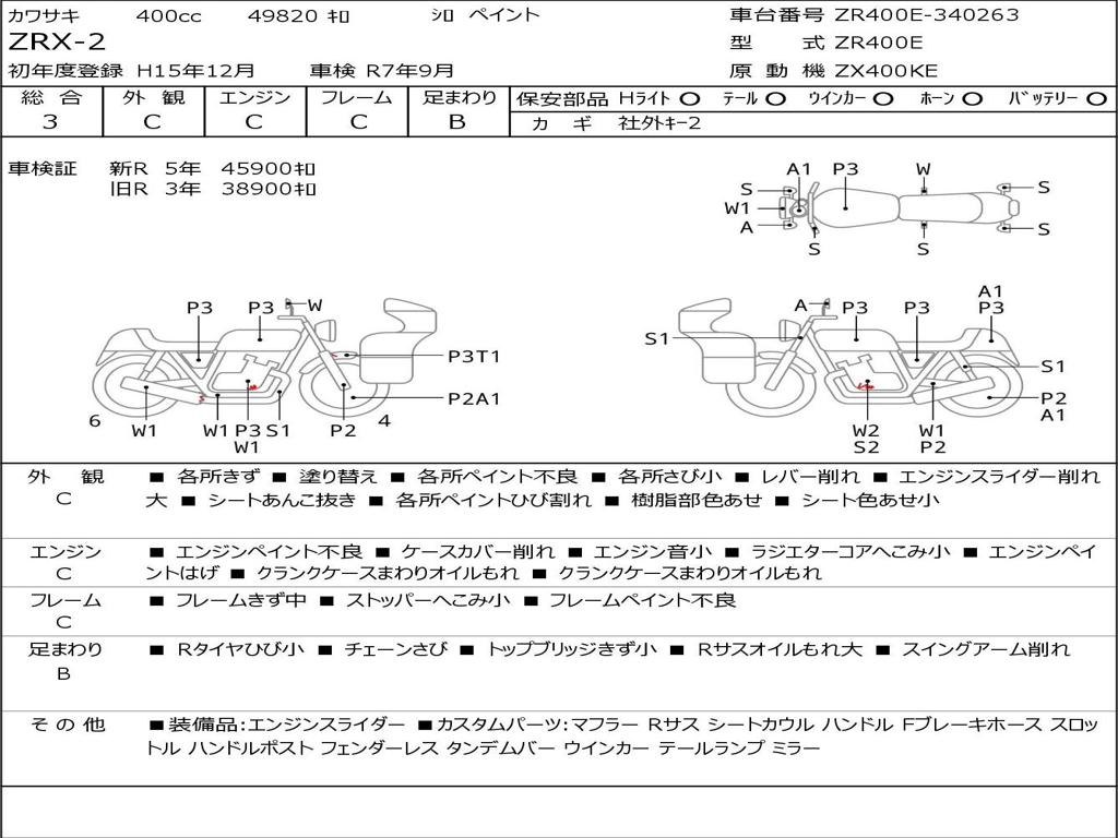| Номер рамы / VIN | ZR400E-340263 |