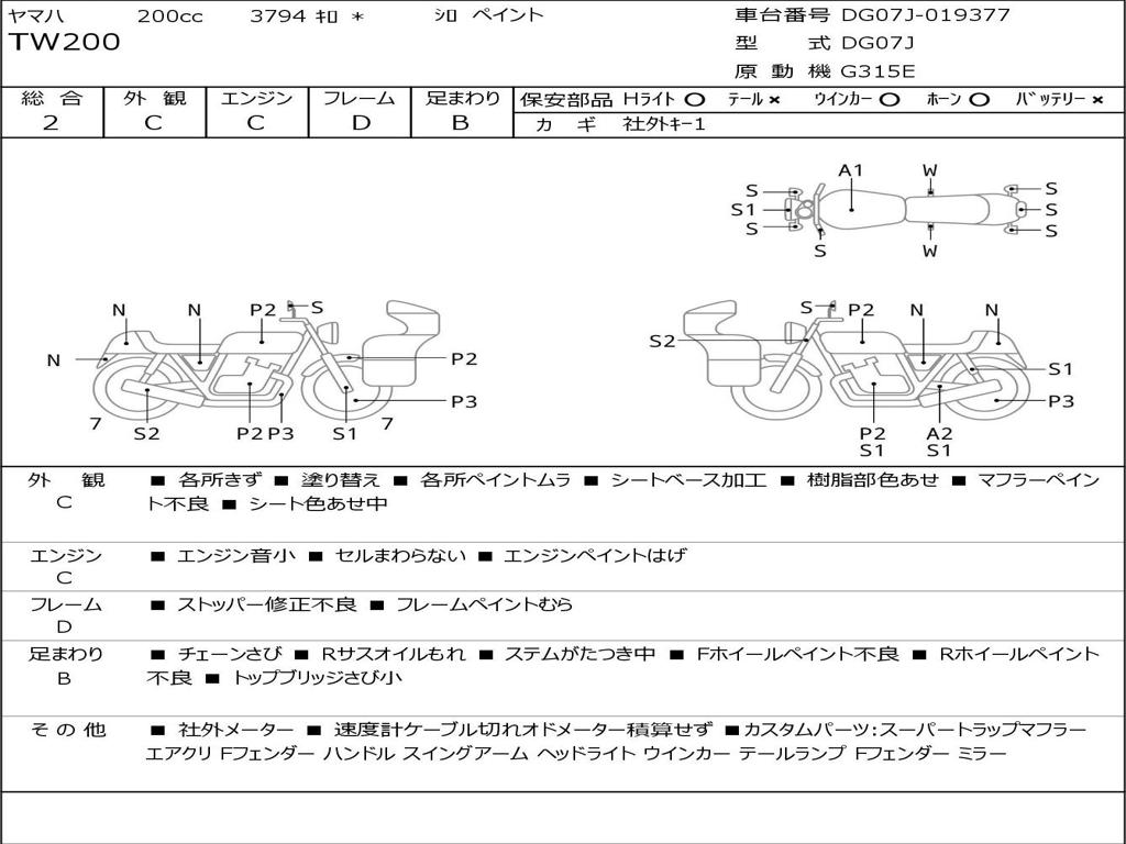 | Номер рамы / VIN | DG07J-019377 |