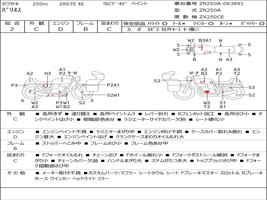 | Номер рамы / VIN | ZR250A-063891 |