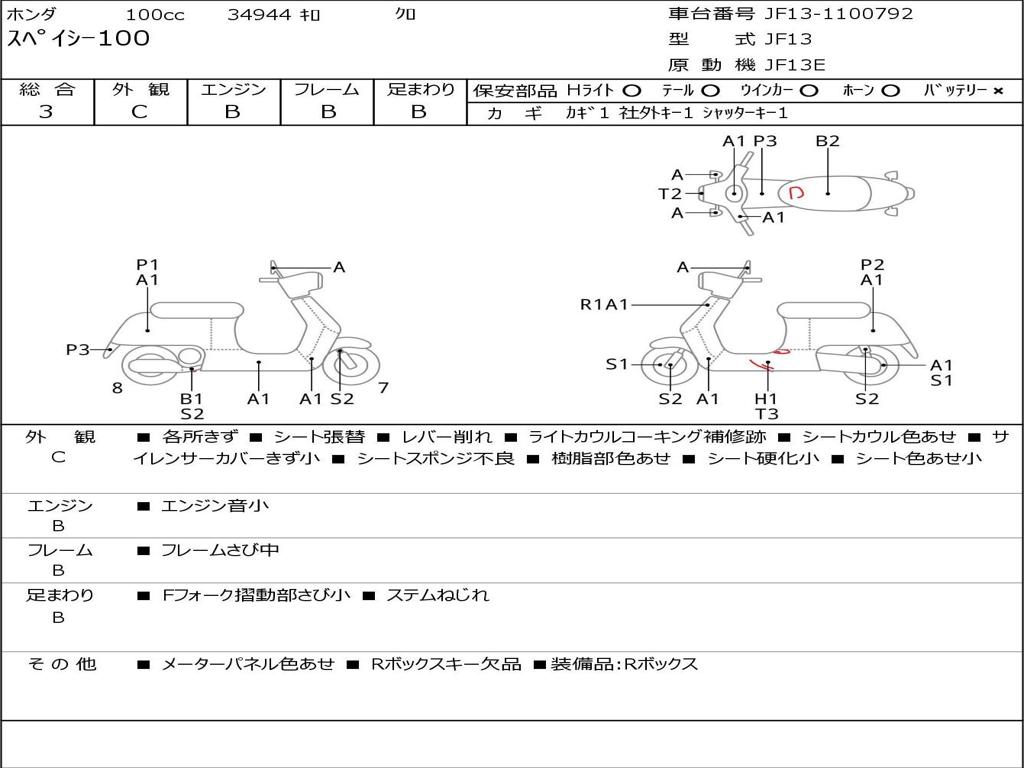 | Номер рамы / VIN | JF13-1100792 |