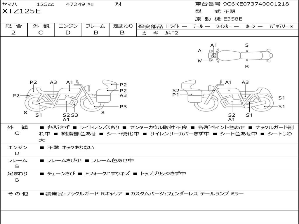 | Отметка об участии мотоцикла в авариях | Мотоцикл не участвовал в ДТП |