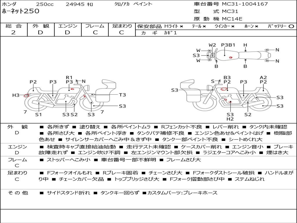 | Номер рамы / VIN | MC31-1004167 |