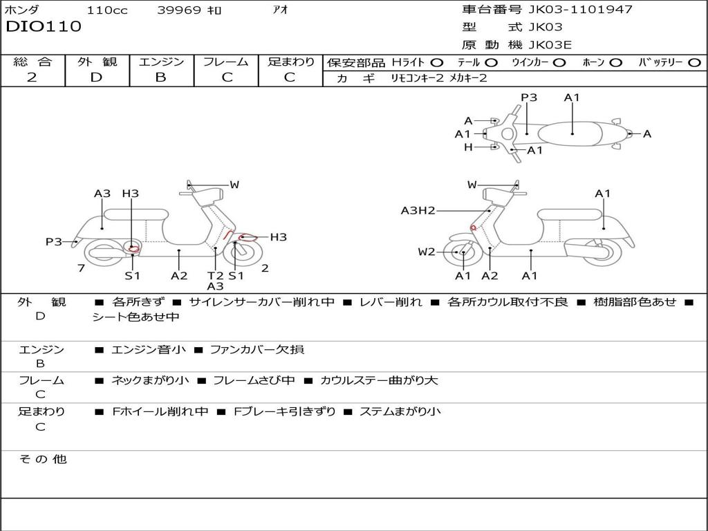 | Номер рамы / VIN | JK03-1101947 |