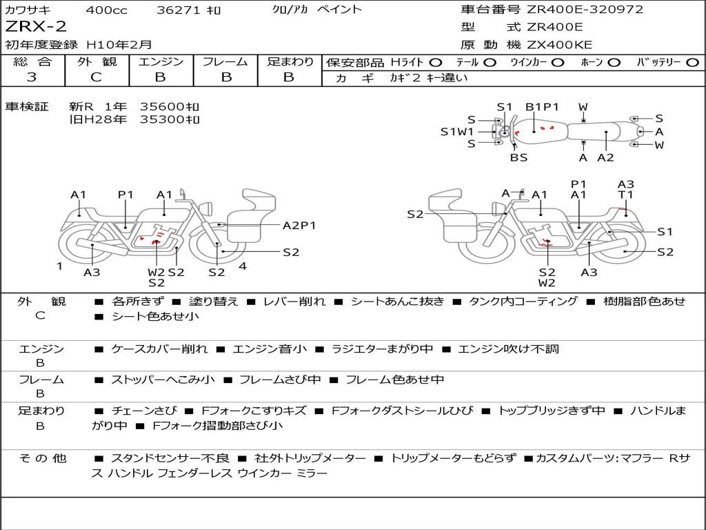 | Номер рамы / VIN | ZR400E-320972 |