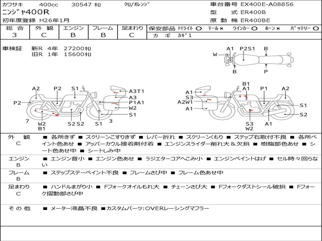 | Номер рамы / VIN | EX400E-A08856 |