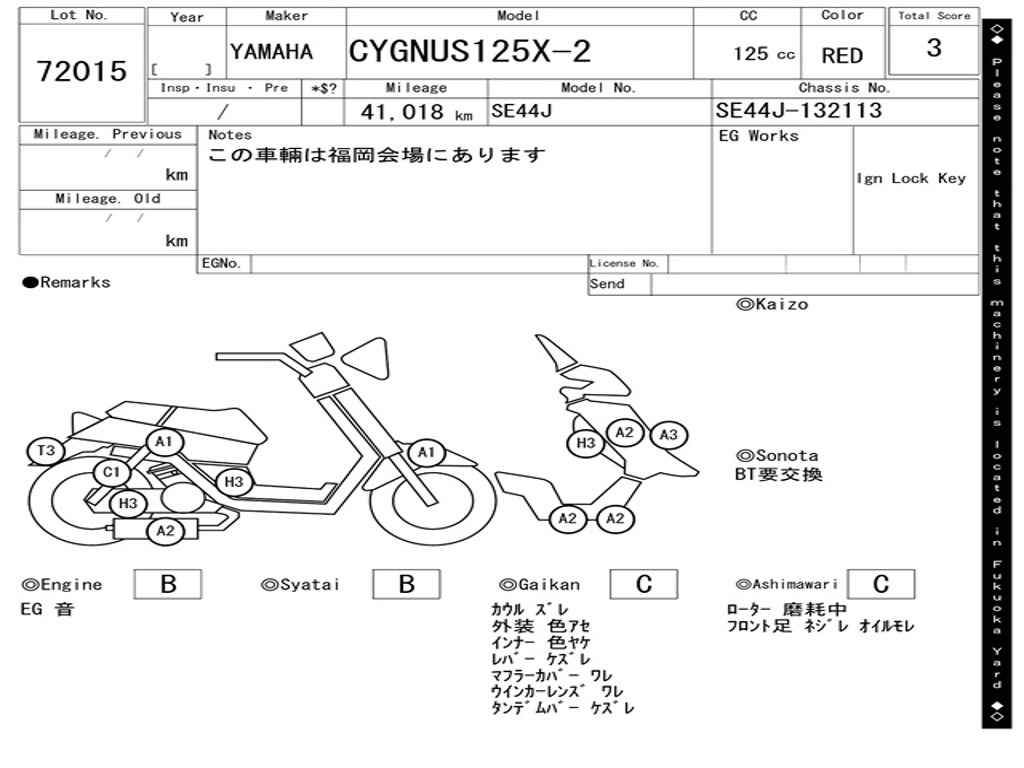 | Номер рамы / VIN | SE44J-132113 |