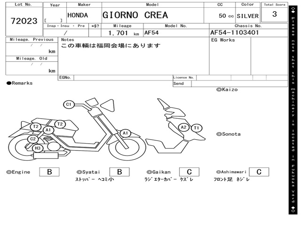 | Номер рамы / VIN | AF54-1103401 |