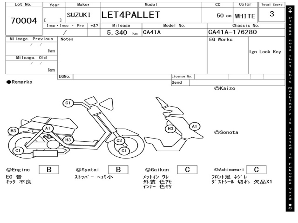 | Номер рамы / VIN | CA41A-176280 |