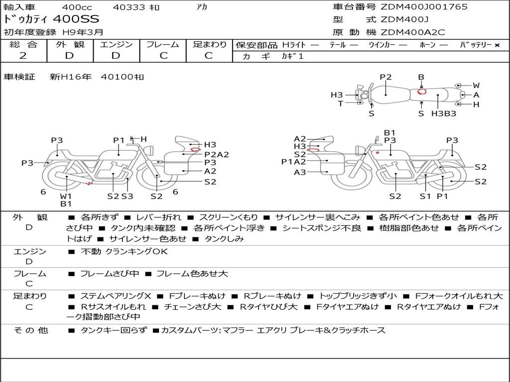 | Номер рамы / VIN | ZDM400J001765 |