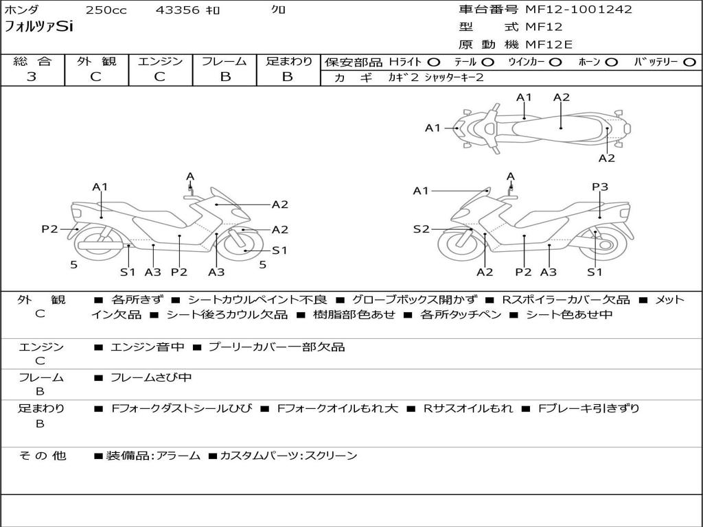 | Номер рамы / VIN | MF12-1001242 |