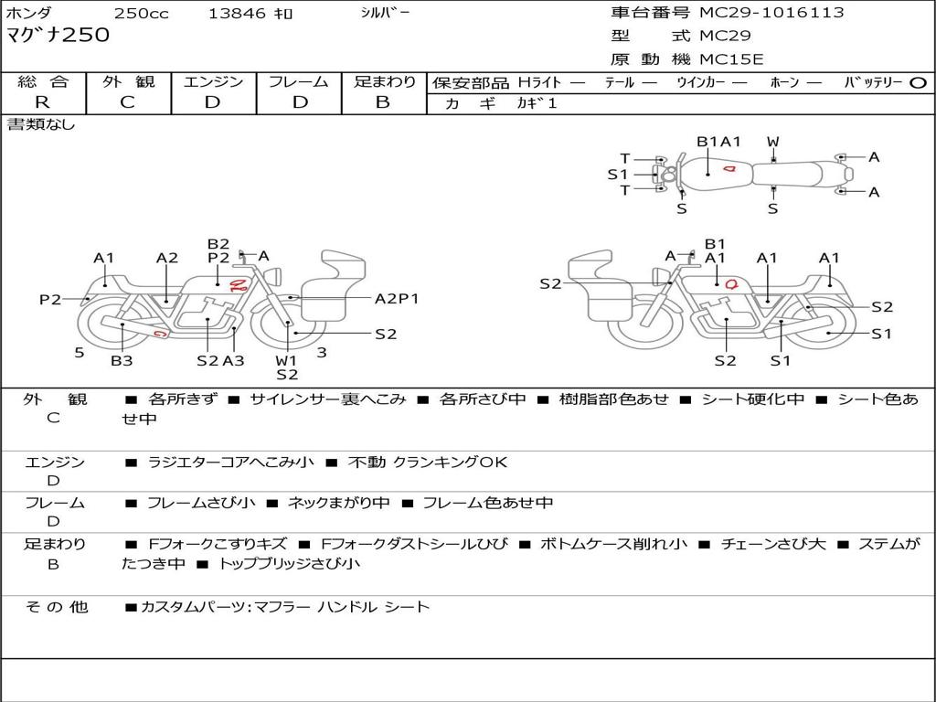 | Номер рамы / VIN | MC29-1016113 |