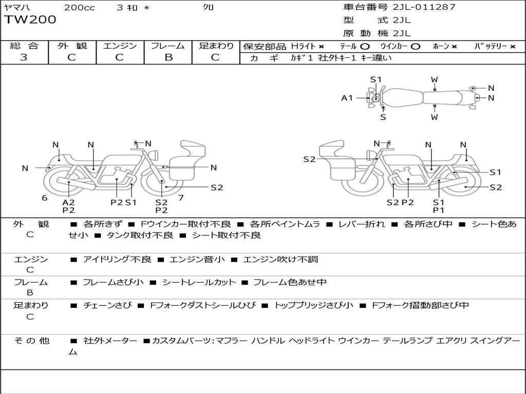 | Номер рамы / VIN | 2JL-011287 |