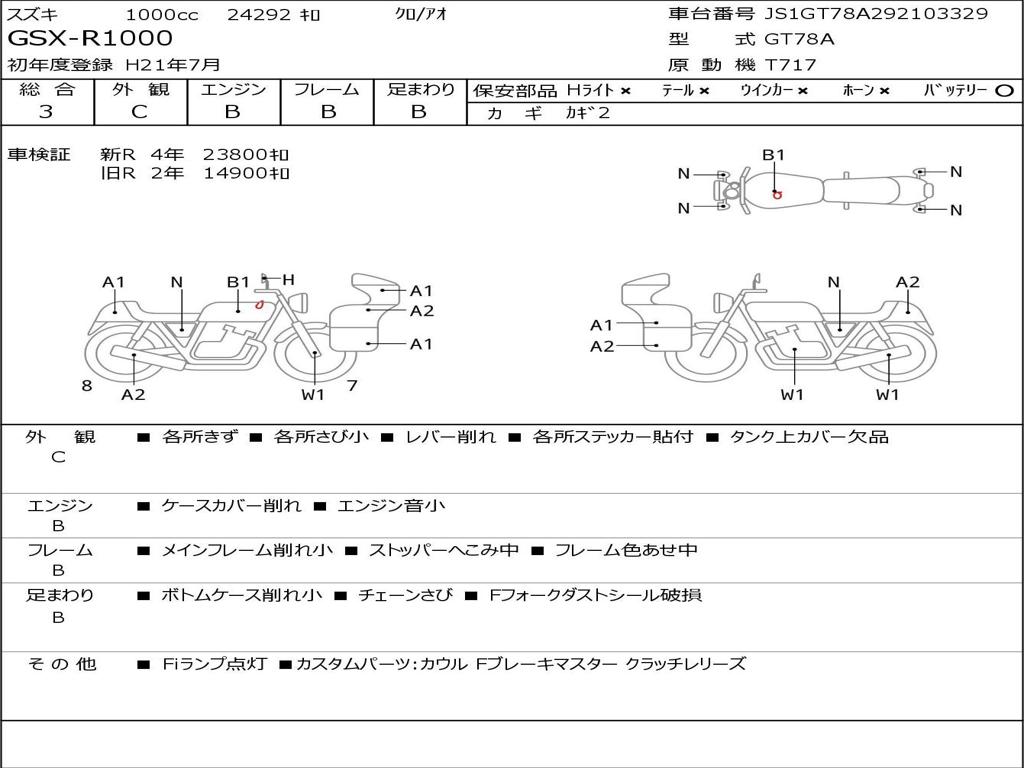 | Номер рамы / VIN | JS1GT78A292103329 |