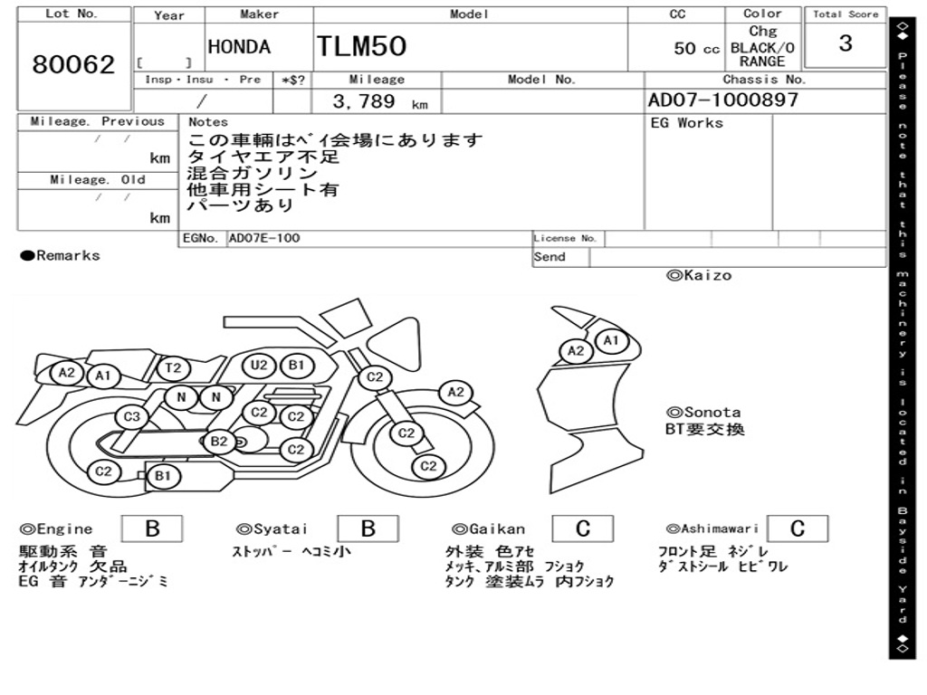 | Номер рамы / VIN | AD07-1000897 |