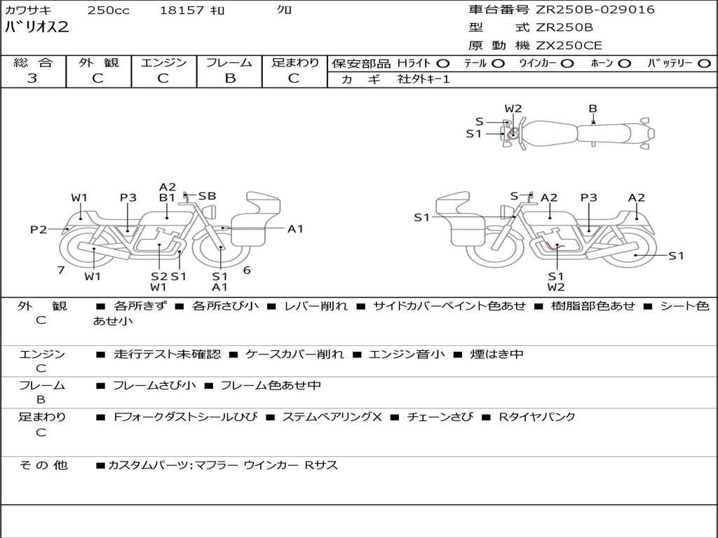 | Номер рамы / VIN | ZR250B-029016 |
