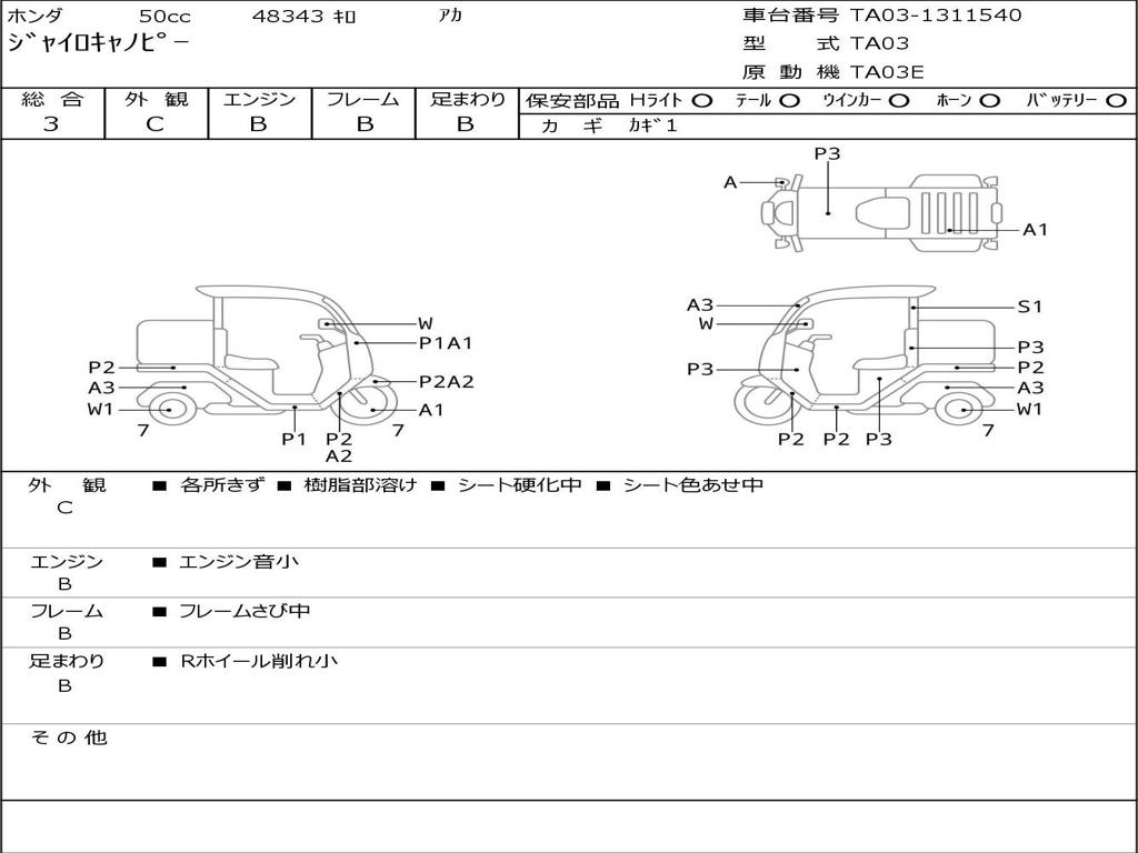 | Номер рамы / VIN | TA03-1311540 |