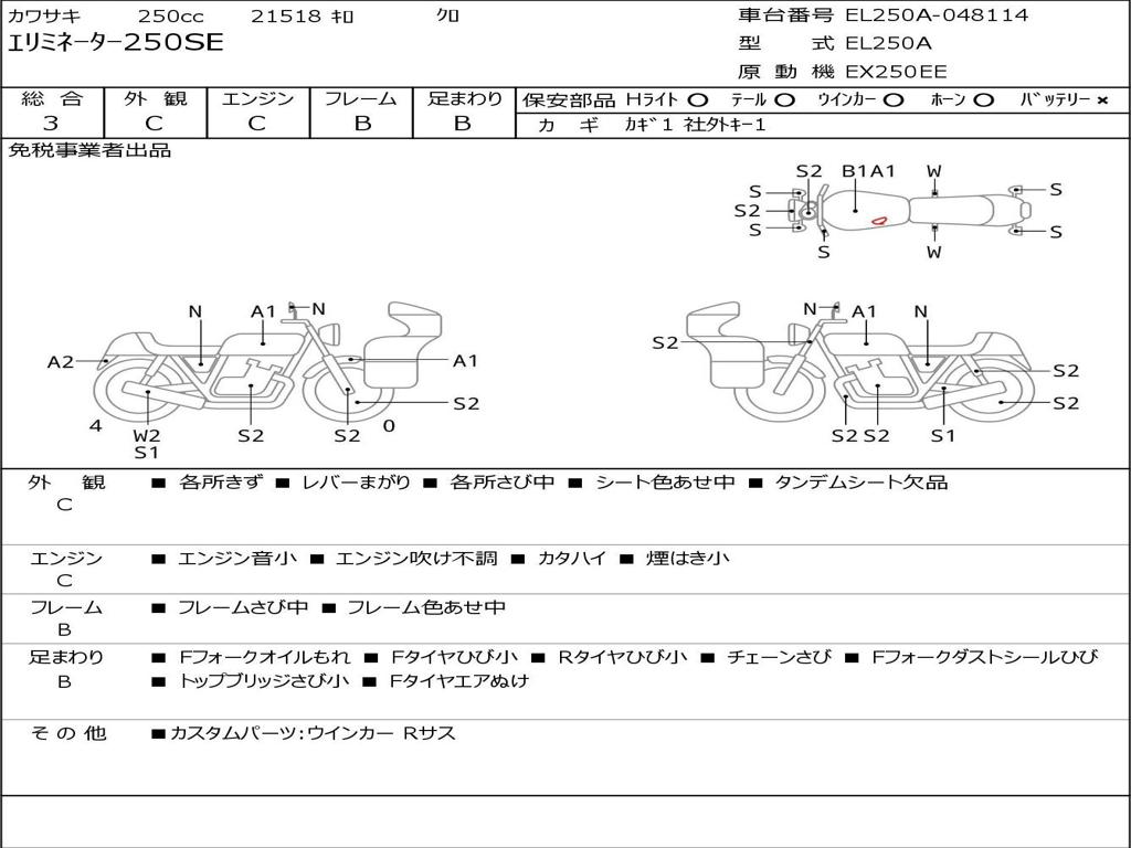 | Номер рамы / VIN | EL250A-048114 |