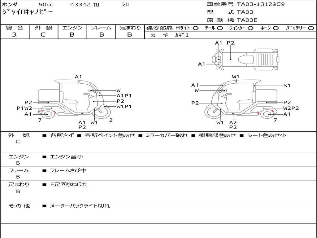 | Номер рамы / VIN | TA03-1312959 |