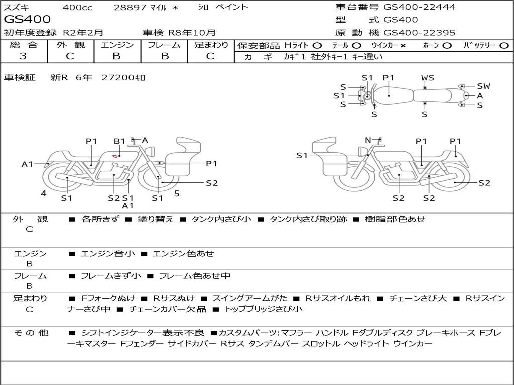 | Номер рамы / VIN | GS400-22444 |
