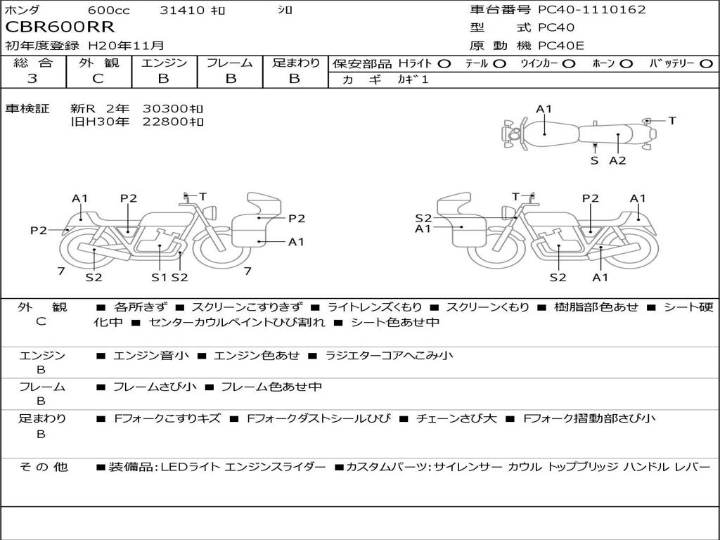 | Номер рамы / VIN | PC40-1110162 |