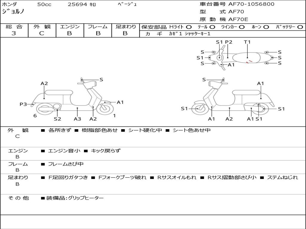 | Номер рамы / VIN | AF70-1056800 |