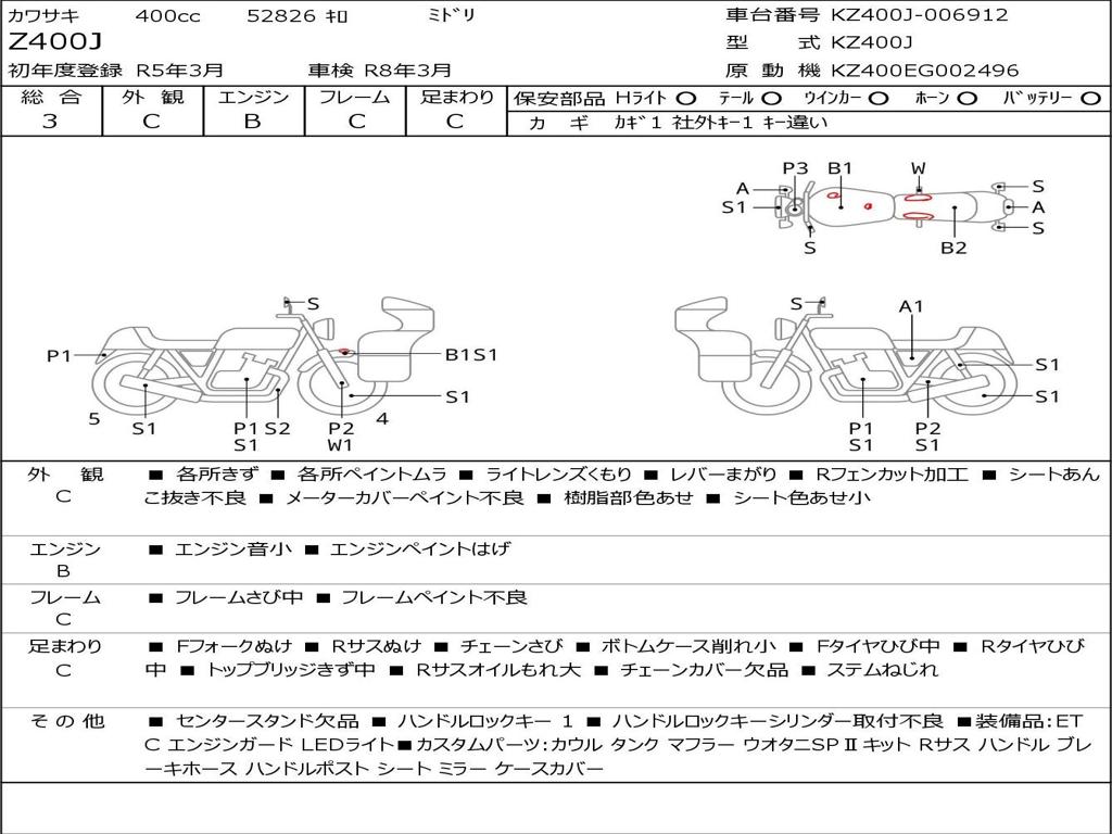 | Номер рамы / VIN | KZ400J-006912 |