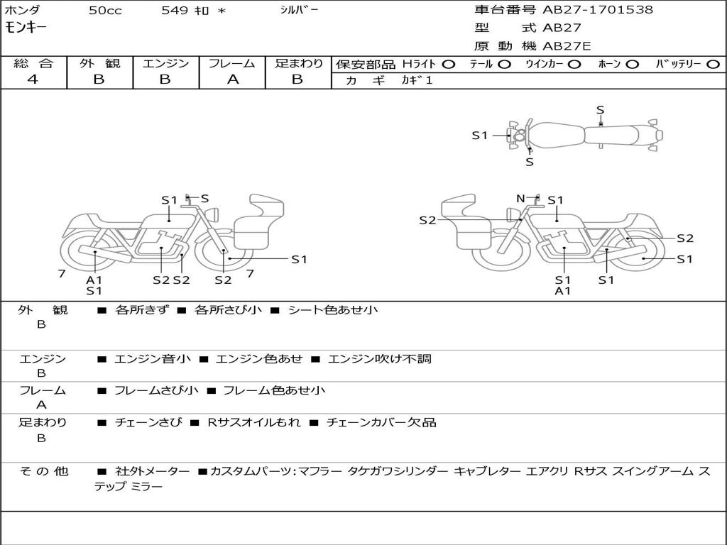 | Номер рамы / VIN | AB27-1701538 |