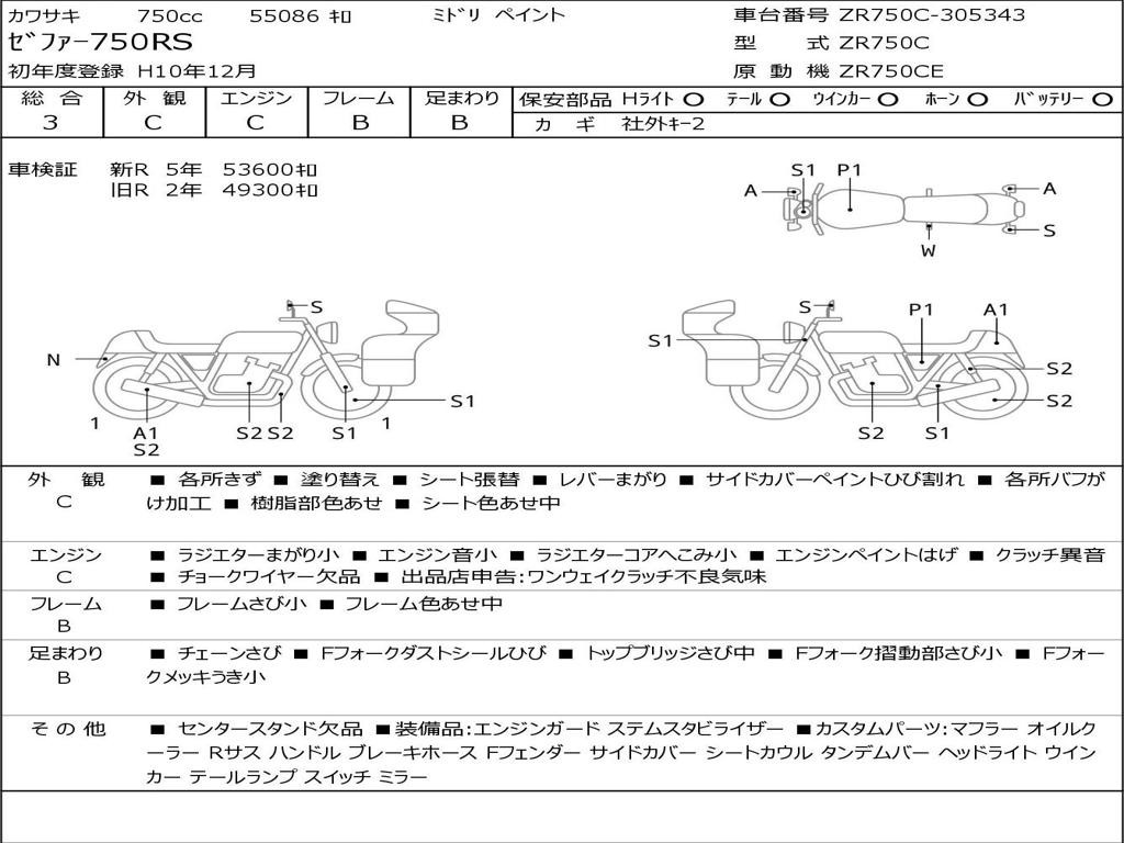 | Номер рамы / VIN | ZR750C-305343 |