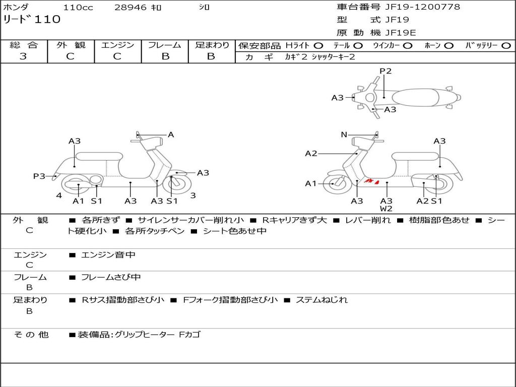 | Номер рамы / VIN | JF19-1200778 |