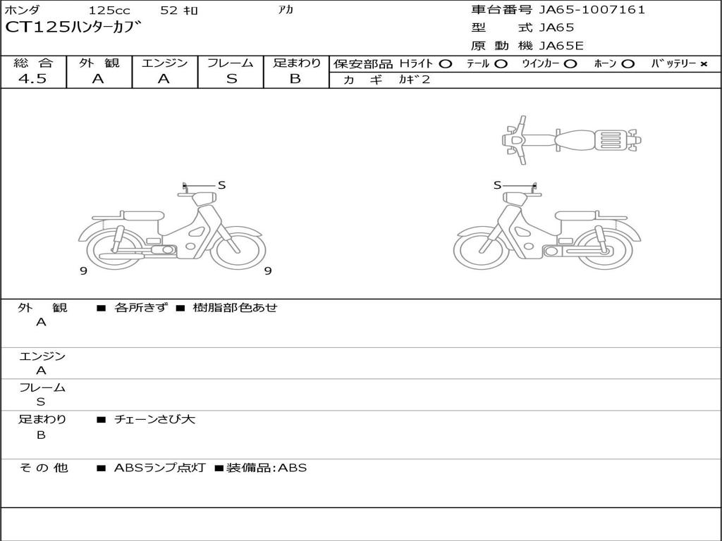 | Номер рамы / VIN | JA65-1007161 |