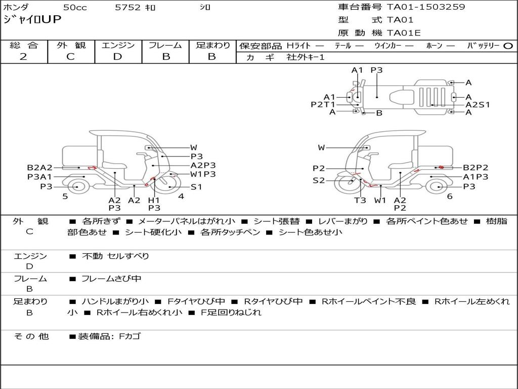| Номер рамы / VIN | TA01-1503259 |