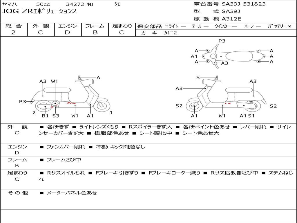| Номер рамы / VIN | SA39J-531823 |