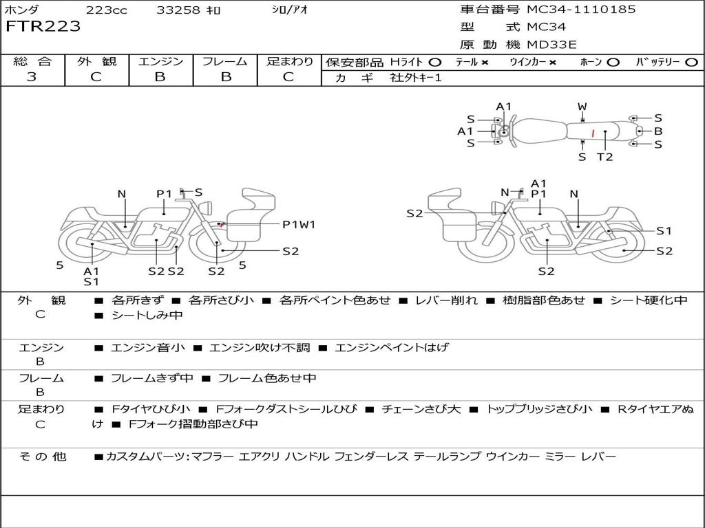 | Номер рамы / VIN | MC34-1110185 |