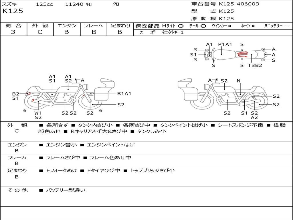 | Номер рамы / VIN | K125-406009 |