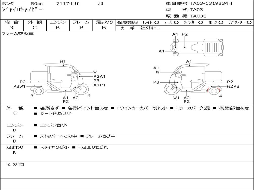 | Номер рамы / VIN | TA03-1319834H |