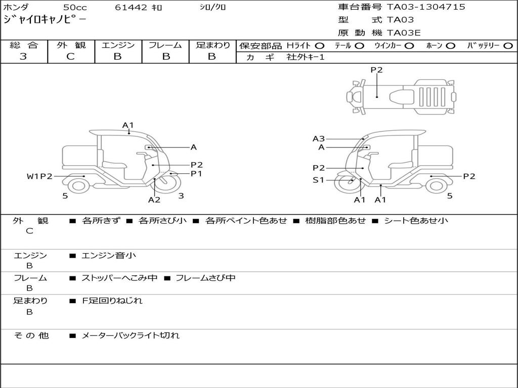 | Номер рамы / VIN | TA03-1304715 |