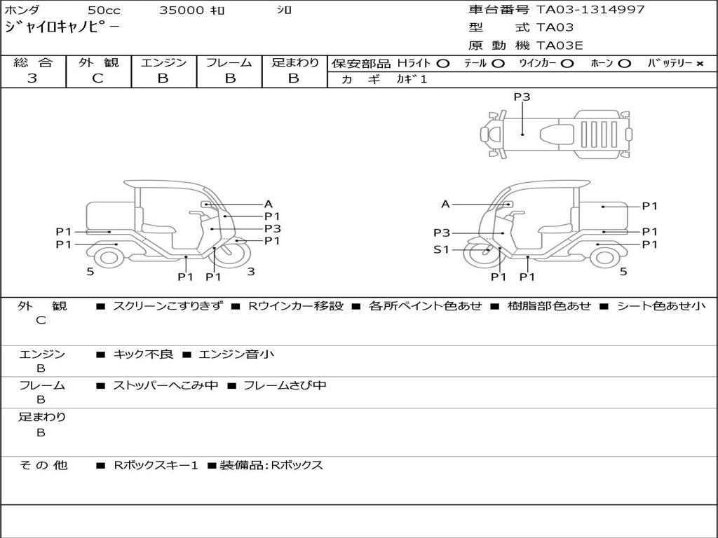 | Номер рамы / VIN | TA03-1314997 |
