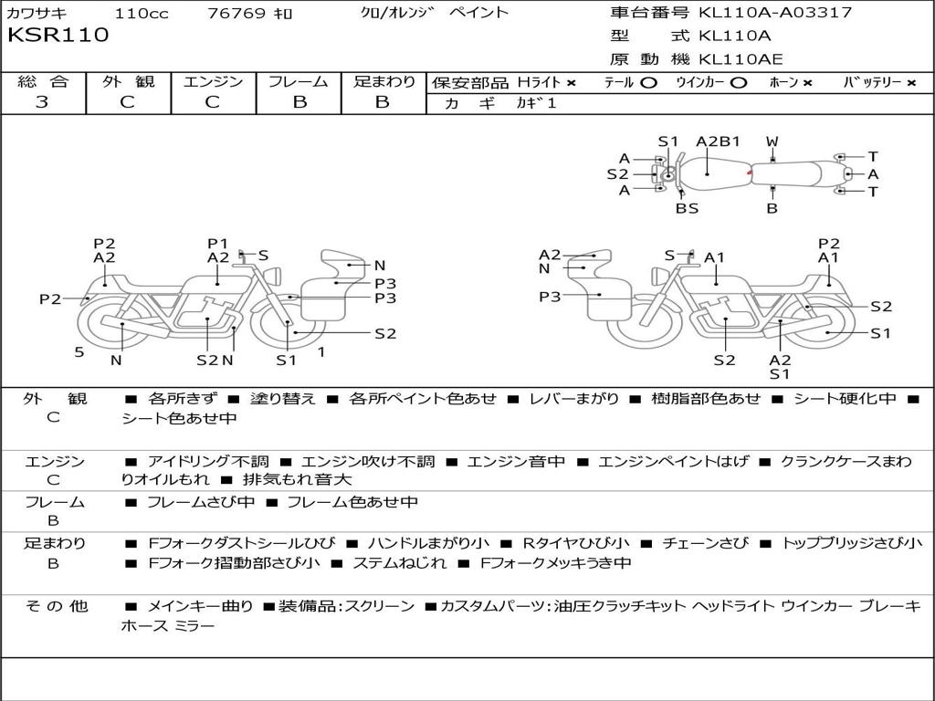 | Номер рамы / VIN | KL110A-A03317 |