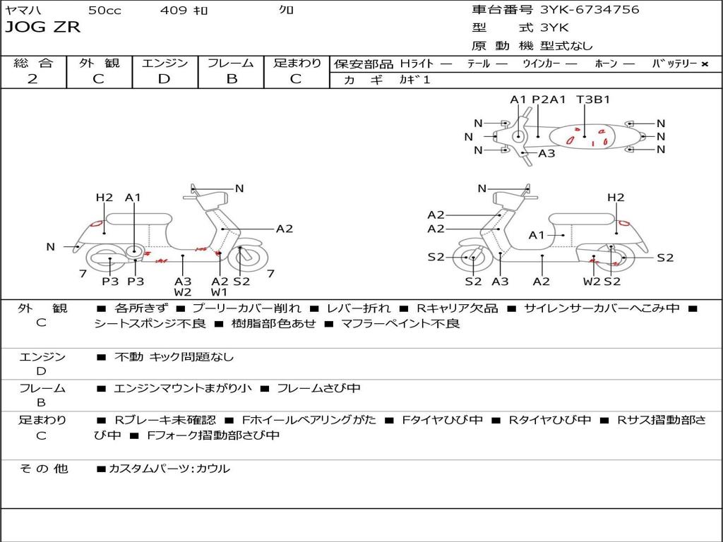 | Номер рамы / VIN | 3YK-6734756 |