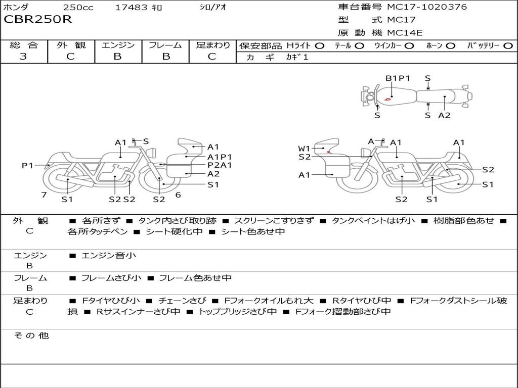 | Номер рамы / VIN | MC17-1020376 |