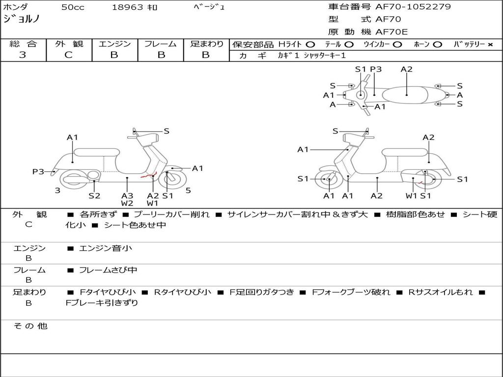 | Номер рамы / VIN | AF70-1052279 |