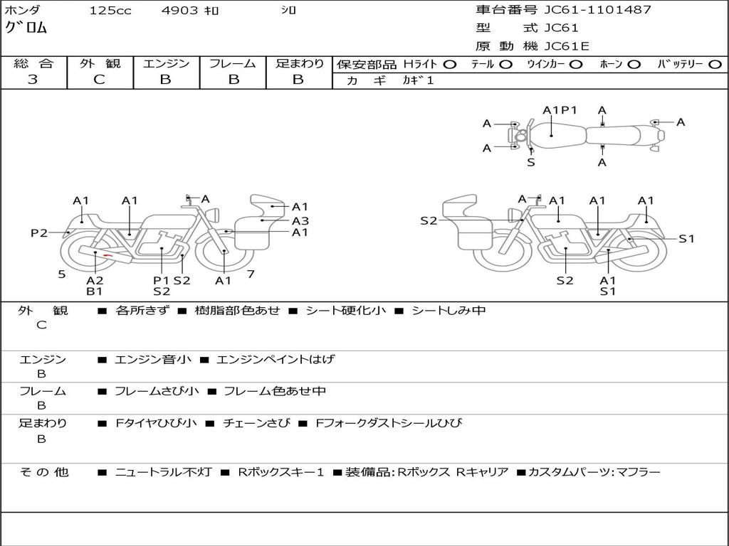 | Номер рамы / VIN | JC61-1101487 |
